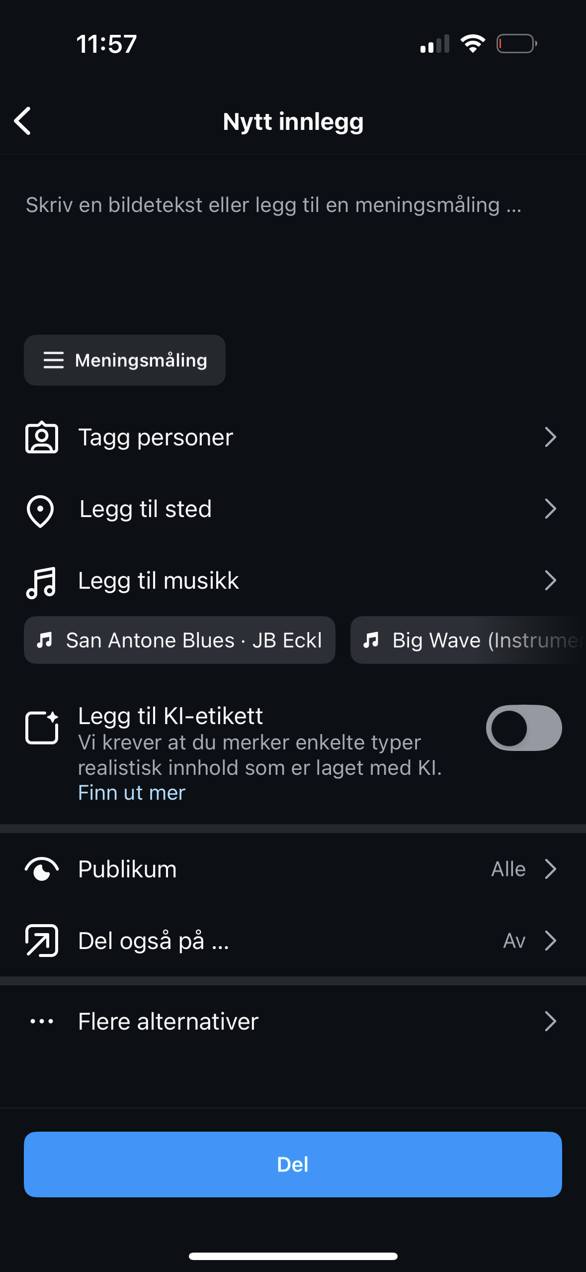 5. Skriv inn teksten din. Husk call to action og hashtags.